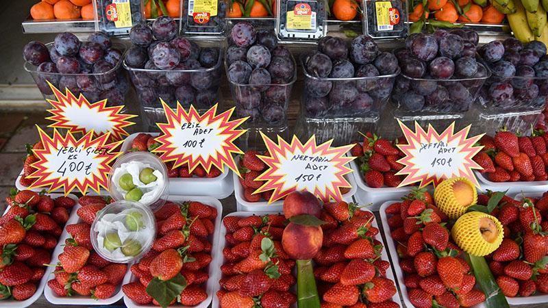Soğuk hava deposunda muhafaza edilip adet olarak satışa sunulan meyvelerden erik 100, nektarin ile şeftali 150 liradan alıcı buluyor. Yerli üretim çilek ise soğuk hava ile fırtına ve yağıştan dolayı tarım alanlarının zarar görmesi sonucu üretim azlığından kilosu 400, adedi 15 liradan tezgahlarda yerini aldı.