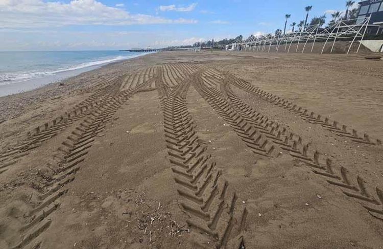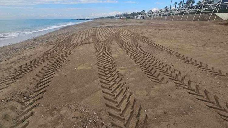 Caretta yuvası kumullar, iş makinesiyle ezildi