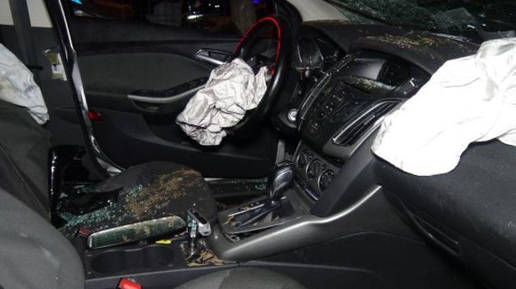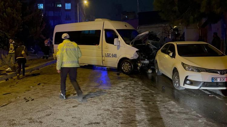 Otomobil çarpışmanın etkisiyle yol kenarındaki bir binanın bahçesine savrulurken, servis minibüsü de yol kenarında park halinde olan 06 DC 6717 plakalı otomobile çarparak durabildi.