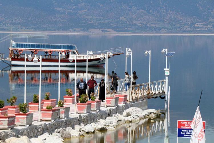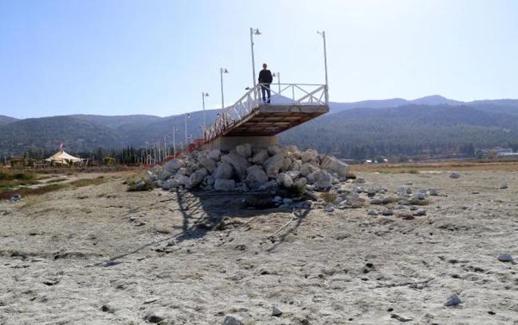 Çekilme olan Burdur Gölü'nde iskele, 18 metre uzaklaştı
