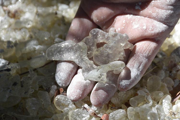 İzmir’in Çeşme ilçesinde damla sakızının hasadı başladı. Temmuz ayında ağaçların çizilmesiyle başlayan süreç, sakızların toplanmasıyla devam ediyor. Kadınlar tarafından yaklaşık 10 gün boyunca ağaçların dibinden tek tek toplanan sakızlar, temizlenip yıkanarak tüketilmeye hazır hale getiriliyor.