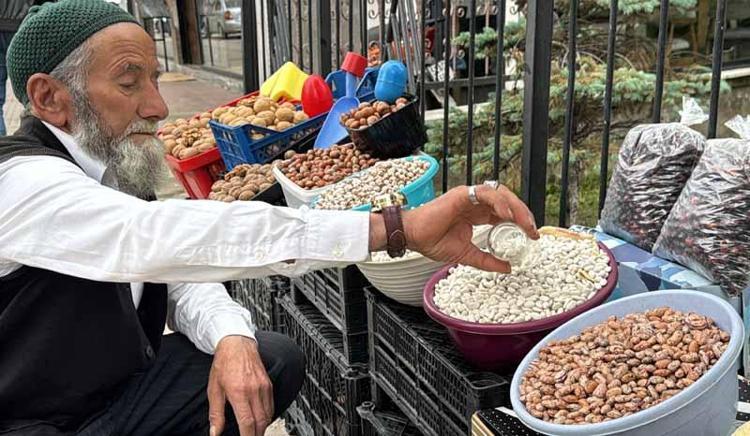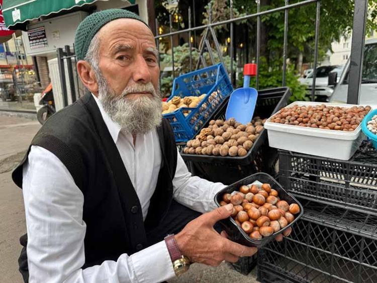 Bu tezgahta gördüğünüz ceviz, fındık ve kuru fasulyeleri kendi bahçemde yetiştiriyorum. Yaşım ilerledi ama çok şükür bir sağlık problemim yok. Sabahları erken kalkıp, tezgahımı açıyorum. Akşam hava kararmaya başlayınca da eve gidiyorum. Günlerimi böyle geçiriyorum. Bu tezgah bana meşgale oluyor. Çalışmak insanı dinç tutar. Gençlere de tavsiyem boş durmasınlar, çalışsınlar. İşleyen demir pas tutmaz” diye konuştu.