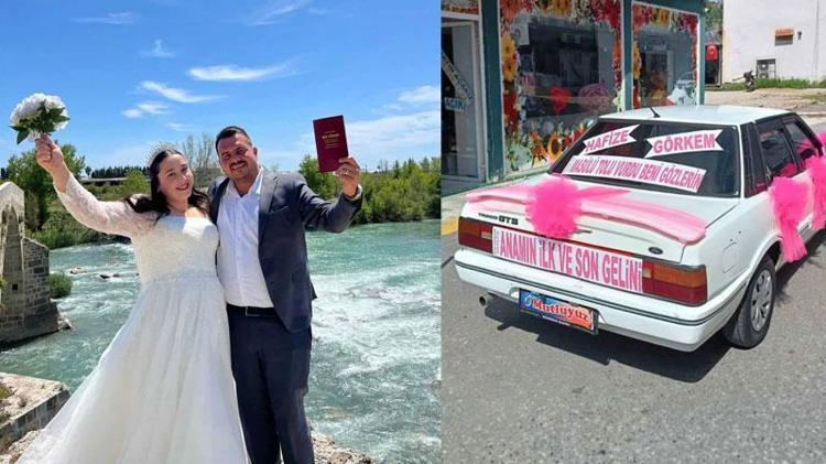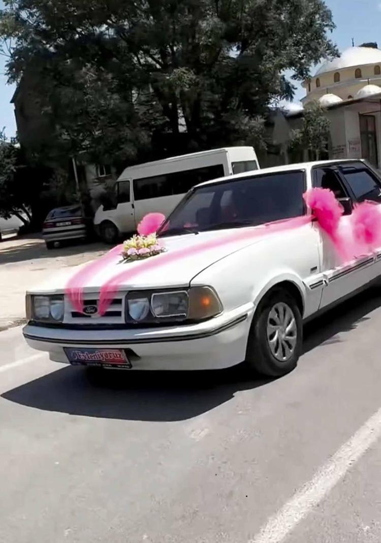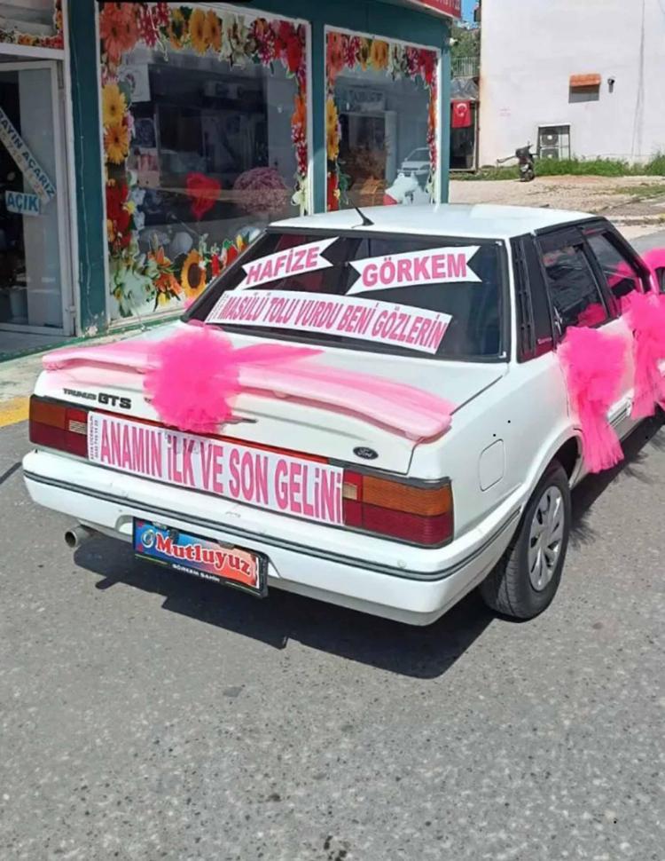 Dün yapılan düğünle dünyaevine giren Şahin, eski model klasik arabasına yöre şivesiyle 'Masülü tolu vurdu, beni gözlerin' yazısı astı.