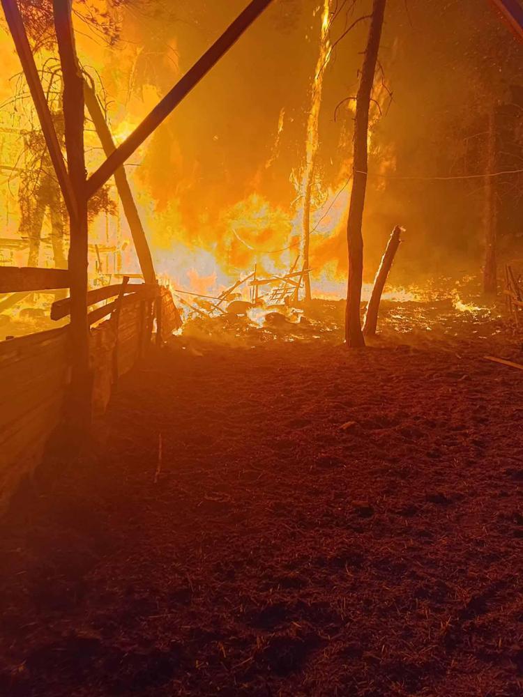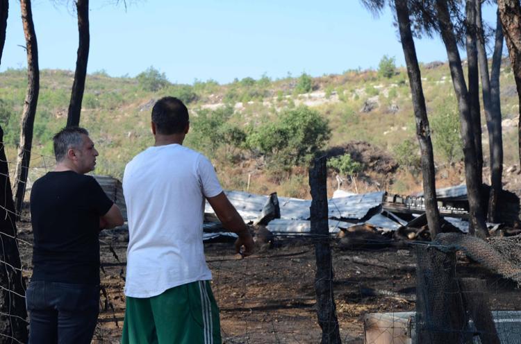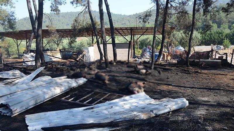 Yangını duyup evinden çıktığında 25 metreye kadar yükselen alevler gördüğünü kaydeden Şahin, "Saman balyaları tutuşmuştu. Alevler çam ağaçlarına daha sonra da içerideki ağılın çatısına ve oradaki bölgeye ulaştı. Koşarak geldim, büyükbaşları çıkardım. Küçükbaşlar için teli koparmaya çalıştım ama o an çatı çöktü. Hayvanların hepsi ayrı bir yere dağıldılar ve beni dinlemediler çünkü şok halindelerdi. Bir anda bütün alev topuna dönen bu alev arkadaki ormana sıçradı. Yapacak bir şey yok, 95 koyun küçükbaş vardı. Onların 70 tanesi gebeydi, eylül ayında doğuracaktı" diye konuştu.