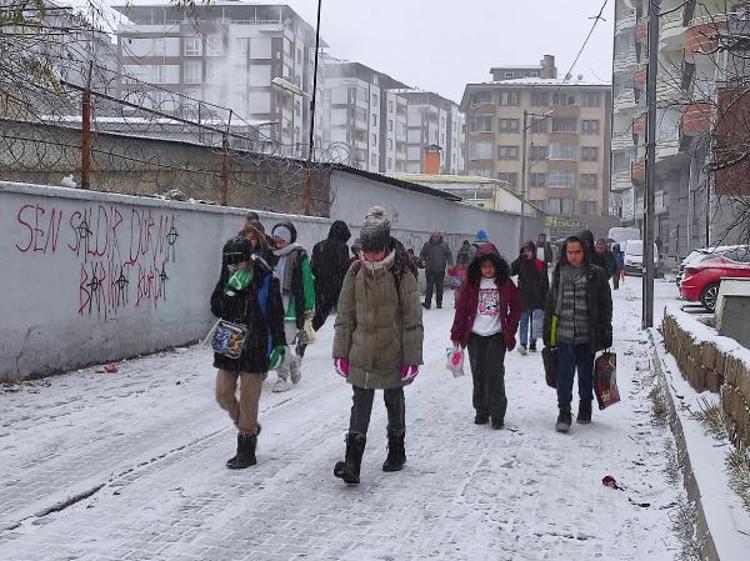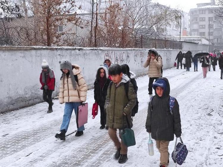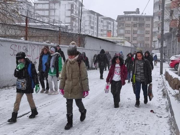 Kentte öğrenciler sabah lapa lapa yağan kar yağışı altında okullarına gitti.