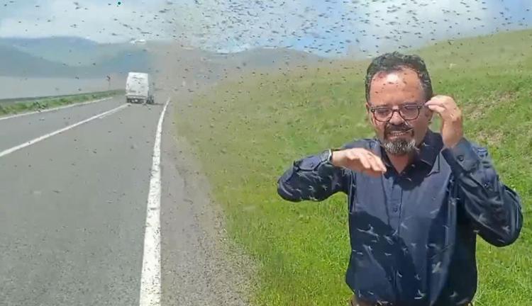 Kars ve Ardahan sınırları arasındaki Çıldır Gölü çevresi yeşil sineklerle kaplandı, seyir halindeki sürücüler zor anlar yaşadı. Sinek yoğunluğu ayrıca cep telefonu kamerasına yansıdı.