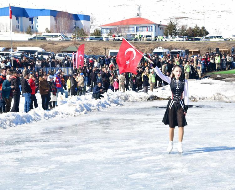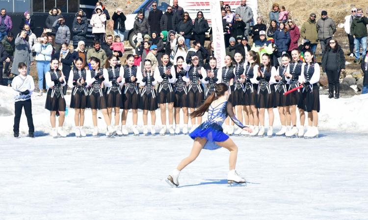 Çıldır Gölü'nde 'Kadınlar Günü'ne özel buz pateni gösterisi