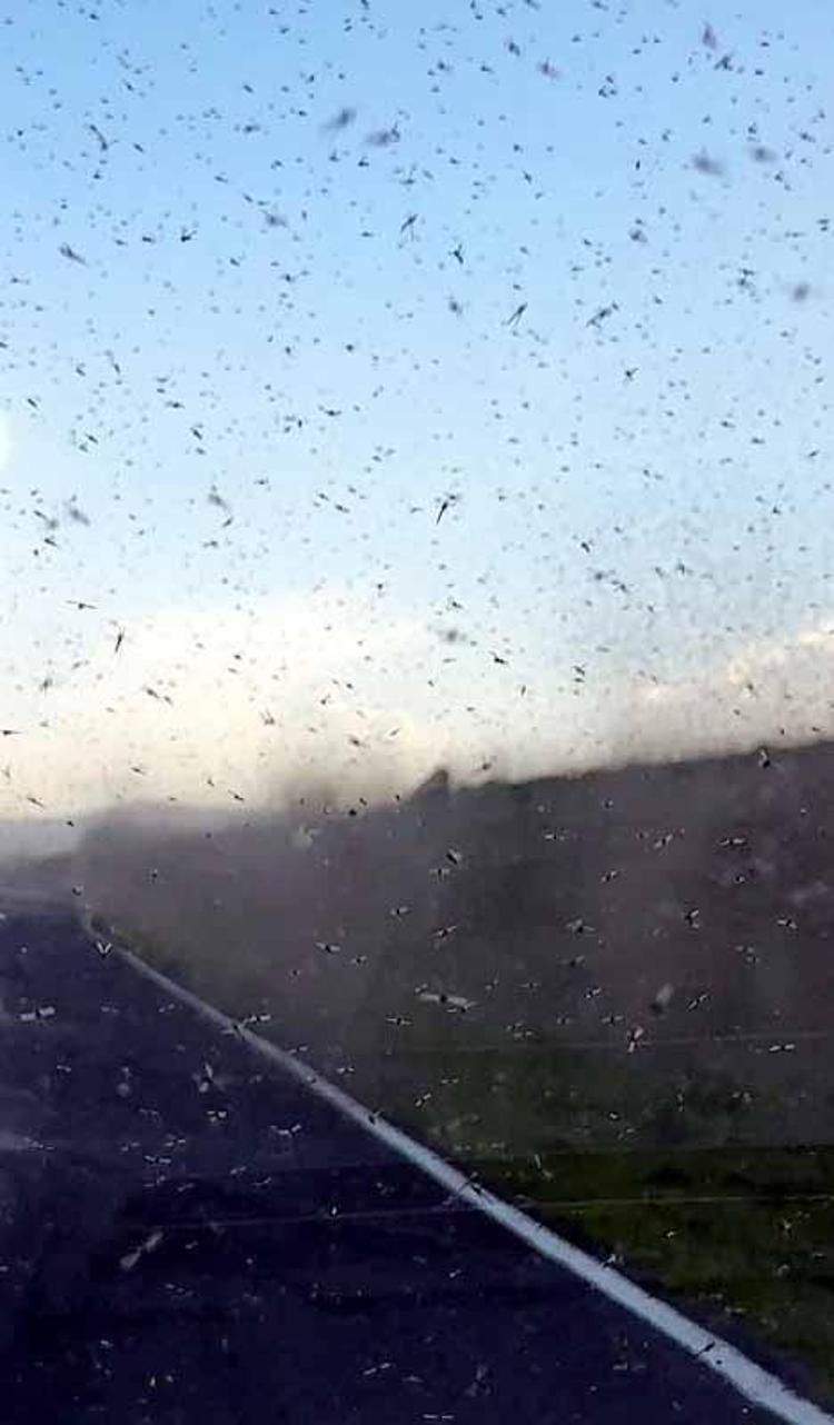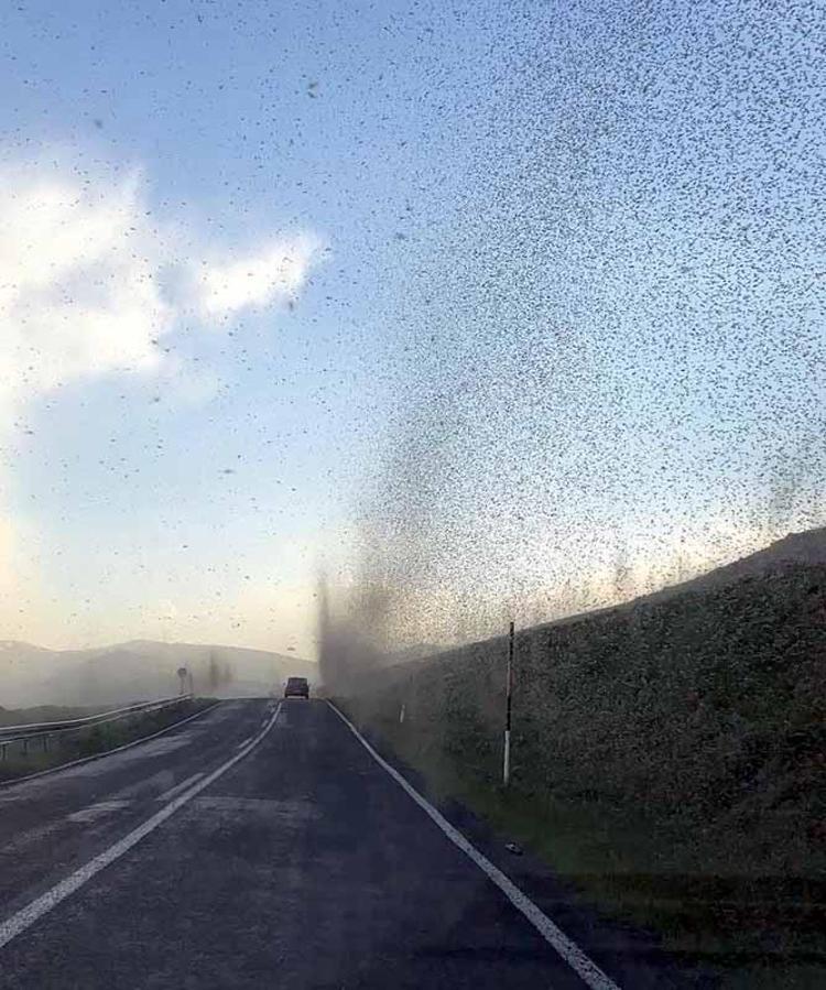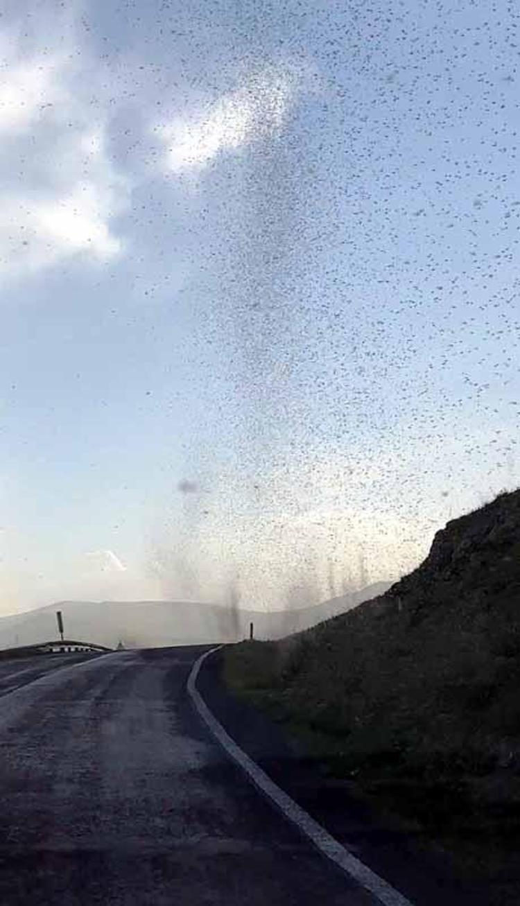 Çıldır Gölü'nü gezmek için bölgeye giden Fatih Balcı, bazı noktalarda hortumu andıran görüntü oluşturan sinek fırtınasını cep telefonuyla saniye saniye kaydetti.