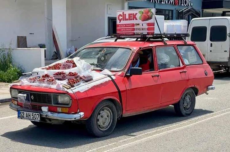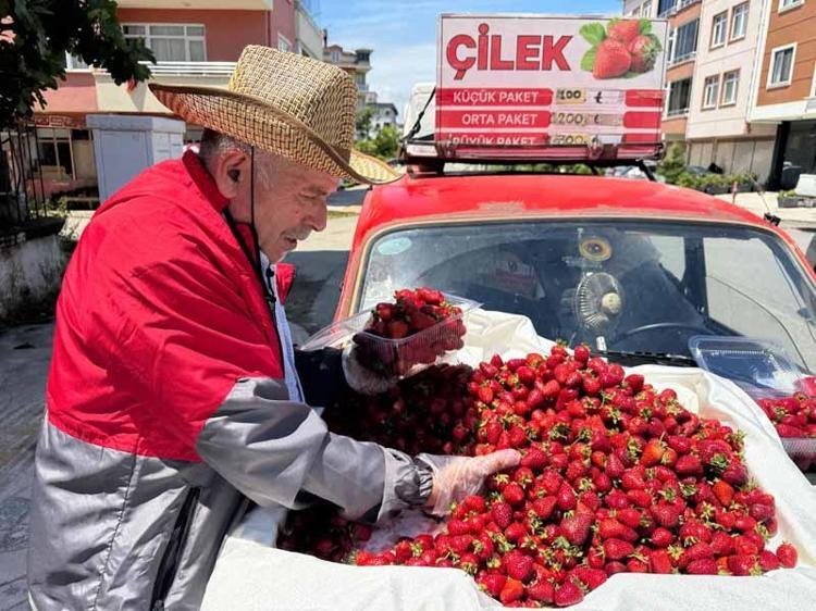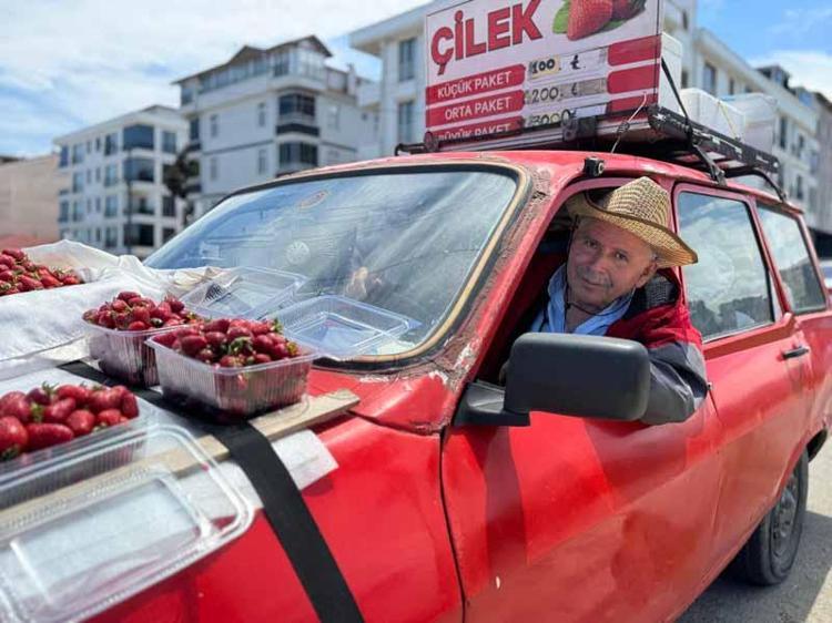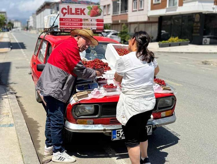 Ordu'da 'Çilek' ismini verdiği 1973 model otomobili ile her gün kilometrelerce yol giderek çilek satışı yapan Abdurrahman Özdemir (63), "Üzeri çileklerle dolu bir otomobil görünce herkes dönüp tekrar bakıyor" dedi.