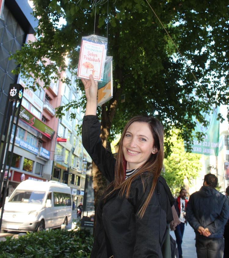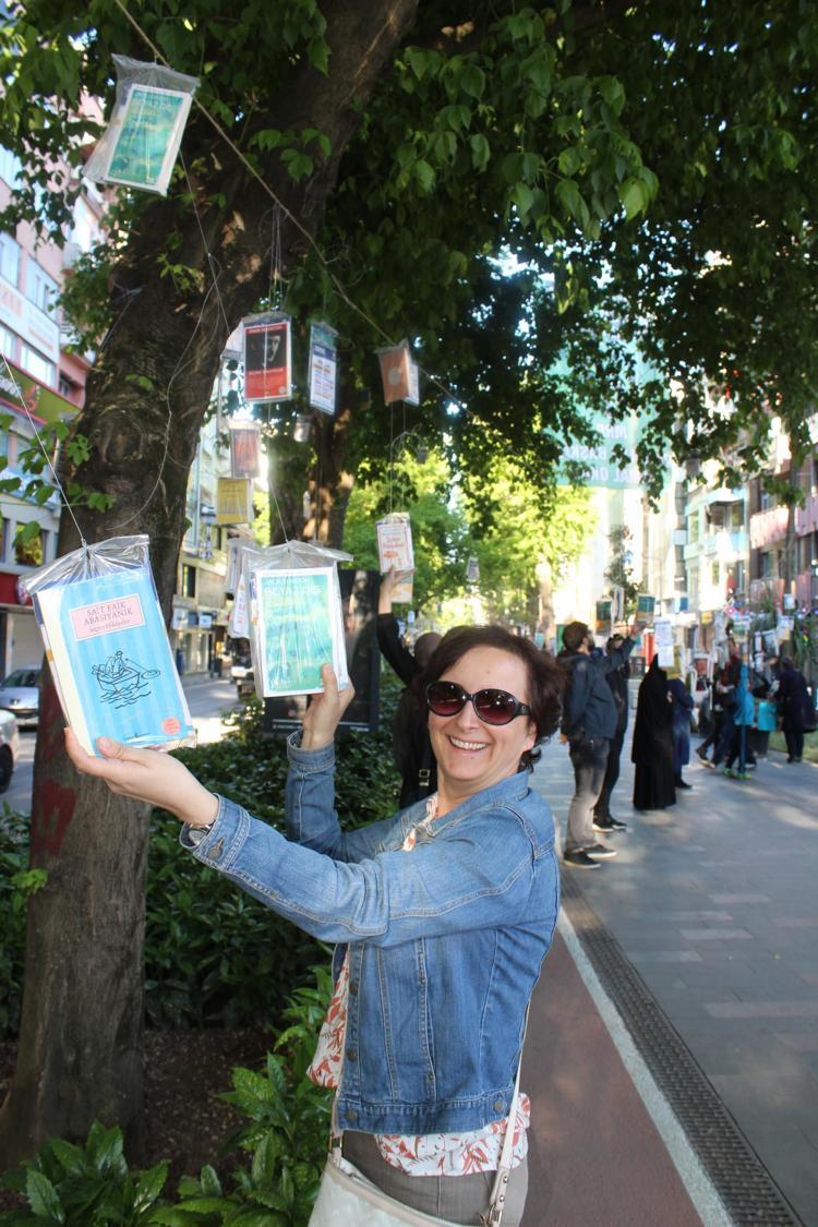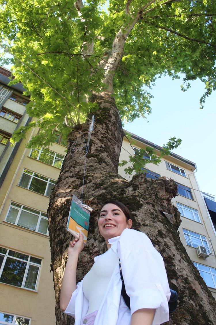 İşe gittiği sırada ağaçlardaki kitaplarla karşılaştığını anlatan Bilgin Sevinç de "Pandemi nedeniyle ara verilmişti. Bu sene de işe giderken denk geldim. Fuara çok güzel şairler, yazarlar geliyor. Saat 7 gibi buradaydım. Ağaçların çiçek açtığını gördüm ama çiçek değil kitapmış. Hoşuma giden bir yazarın kitabını aldım. Kısmetliyim bugün" diye konuştu.