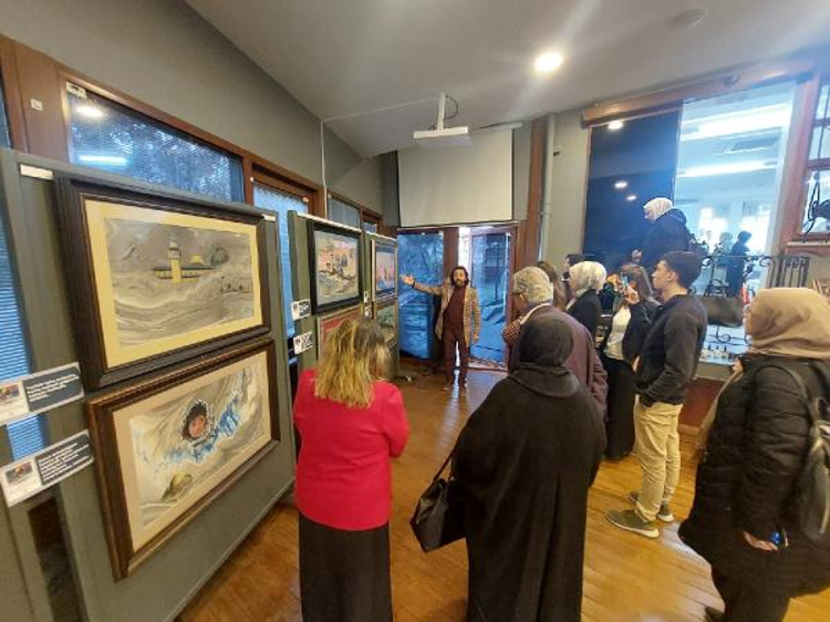 Çınar Uluslararası Kültür ve Sanat Derneği Yönetim Kurulu Başkanı Selcan Zeliha Özkök Arda ise “Derneğimizde 25 hocamız 310 kursiyerimiz bulunuyor. Başta resim, porselen, tezhip, çini boyama olmak üzere ud ve piyano kurslarımız devam ediyor. Burada yüreklerimizi eğitim ve sanatın gücüyle birleştirerek Filistin halkının yaşadığı acıları paylaşmak ve onların mücadelesine bir nebze olsun destek olmak için bugün bir aradayız. Bu sergi sadece bir sanat etkinliği değil, insanlığın vicdanının derinliklerine de dokunan çağrı niteliği taşımaktadır. Bizlere, Filistin halkının haklı davasının gördüğü haksız muameleye karşı bir duruş ve tüm Müslümanların direnişteki rolünü hatırlatarak yanında olduklarımızı gösterme fırsatı da sunuyor. Sanat insanların duygularını en derin şekilde ifade etmelerine olanak tanır. Bu sergi sanatın evrensel dilini kullanarak Filistin’de yaşanan adaletsizliği ve zulmü insanlığa duyurup insanlığın kalbine dokunarak hak ve adaletin tescilini dualarımızda buluşmasını sağlıyor” diye konuştu.