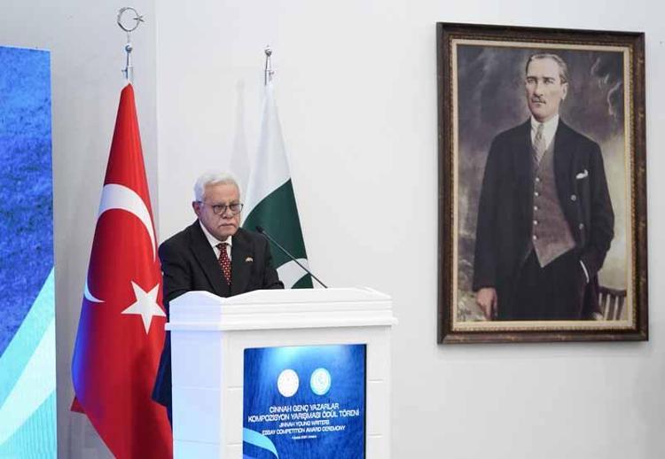 Cüneyd, Pakistan'ın kurucusu Muhammed Ali Cinnah'tan adını alan yarışmanın, Türkiye'de yürüttükleri diplomasi faaliyetlerinin mihenk taşlarından olduğunu belirterek, "Bildiğiniz üzere 80 yıla yaklaşık dayanan bir hikayemiz var ve bu girişimle bu hikayeyi daha da derinleştirdik. Gençlerin fikri büyümesi, gençliğin katılımının artırılması ve akademik mükemmeliyete verdiğimiz daimi önemi yansıtan bir girişim bu yarışmamız. İki devlet arasındaki bu sıra dışı bağ, ortak inanç, kültür ve dil yakınlığı, ortak tarih bilinci ve zengin manevi mirasımızdan kaynaklanıyor. Öyle bir bağ ki bu zaman, coğrafya ve siyasetin de sınırlarını aşıyor. Karanlık İngiliz sömürge döneminde bile bugünün Pakistan'ın Müslümanları bildiğiniz üzere Türk kardeşlerine milli mücadelelerinde yürekten ve fedakarca destek verdiler. Bunu bir görev olarak gördük biz ve yürekten yaptık bunu" ifadelerini kullandı.