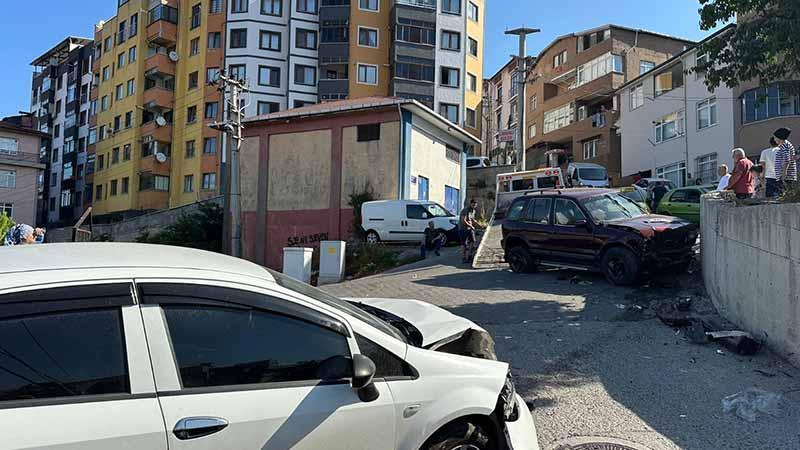 Zonguldak’ta, yokuş aşağı indiği sırada freni boşaldığı iddia edilen cip, park halindeki 2 otomobile ve duvara çarptı. Kazada cipteki 4 kişi yaralandı.
