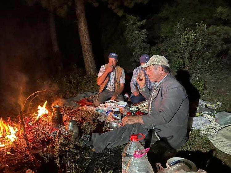 İlk gecesinde odun ateşinde çay demleyip, yemek pişiren çoban Ali Karakaya, doğa ile iç içe olmanın kendisine huzur verdiğini de dile getirdi.