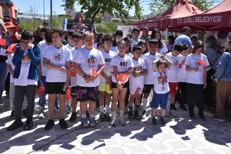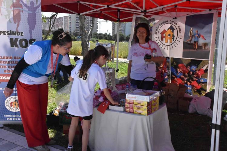 İzmir Hasta Çocuk Evleri Derneği'nin düzenlediği 23 Nisan Çocuk Koşusu kapsamında, sağlıklı çocukların katılımıyla kanser ya da benzeri uzun süreli tedavi gören çocuklara destek olmak amacıyla farkındalık koşusu yapıldı.