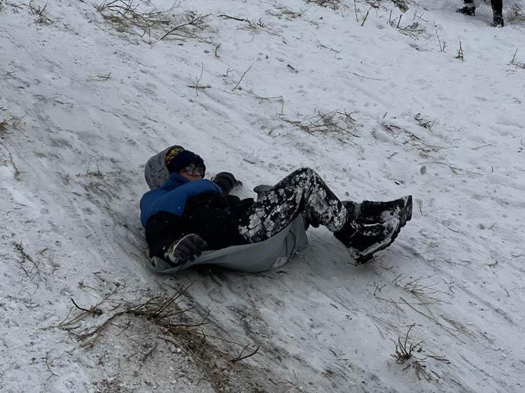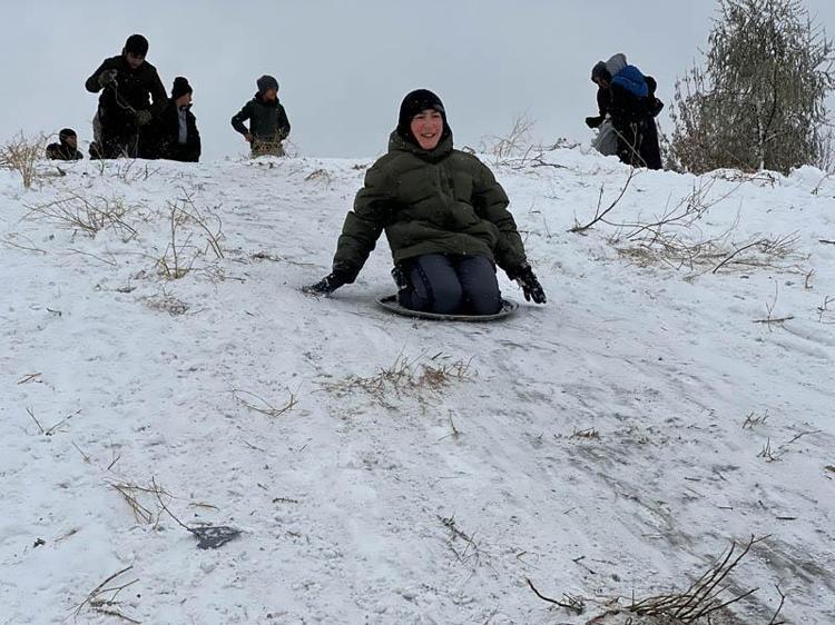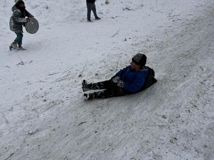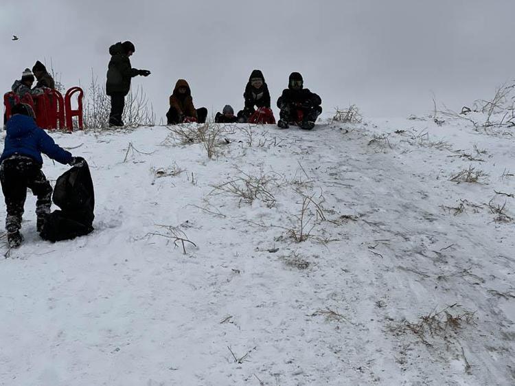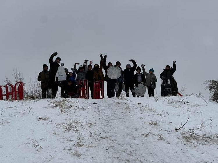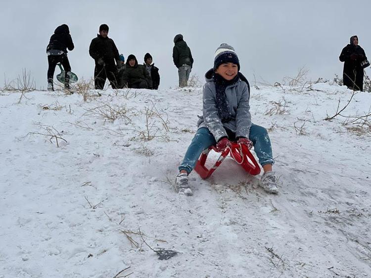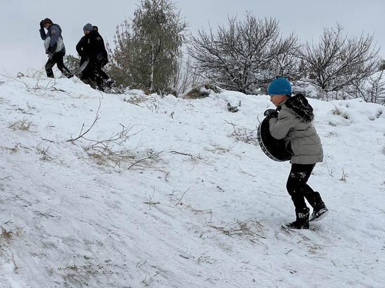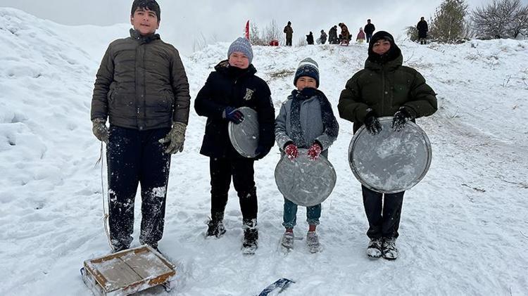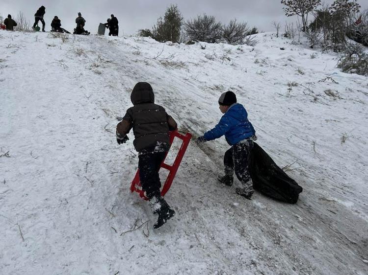 Yaklaşık 30 çocuk, yanlarında getirdiği malzemelerle tepeye tırmanarak kendilerini yokuştan bıraktı. Kar keyfini yaşadıklarını belirten çocuklar, evden getirdikleri malzemeler ile kaydıklarını söyledi.