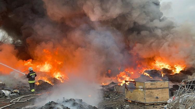 Alevlerin yükseldiği tesisteki yangını söndürmek için bölgeye çok sayıda itfaiye ekibi sevk edildi.