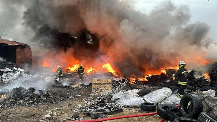 Yangın, saat 18.00 sıralarında Çorlu'nun Hıdırağa Mahallesi, İstasyon Caddesi üzerindeki geri dönüşüm tesisinde meydana geldi.