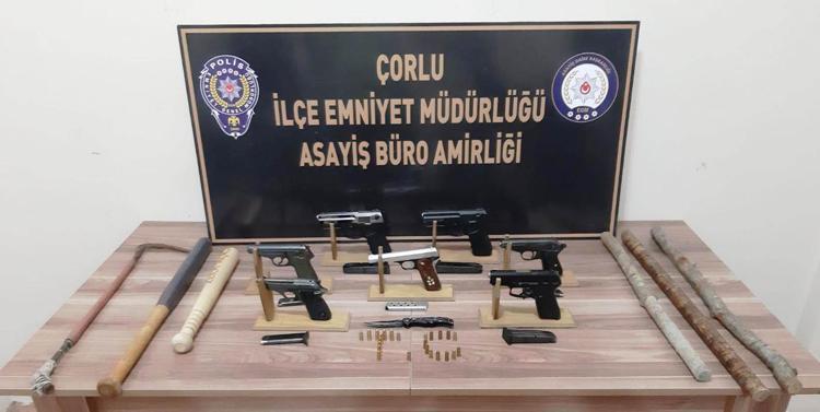 Tekirdağ'ın Çorlu ilçesinde iki grup arasında çıkan silahlı kavgayı polis havaya uyarı ateşi açarak önledi. Arbede sırasında 2 polis memuru beyzbol sopası darbesi ile yaralanırken, 2 kişi tabanca, 6 kişi bıçak ve sopalarla olmak üzere toplamda 10 kişi yaralandı, 20 kişi gözaltına alındı.