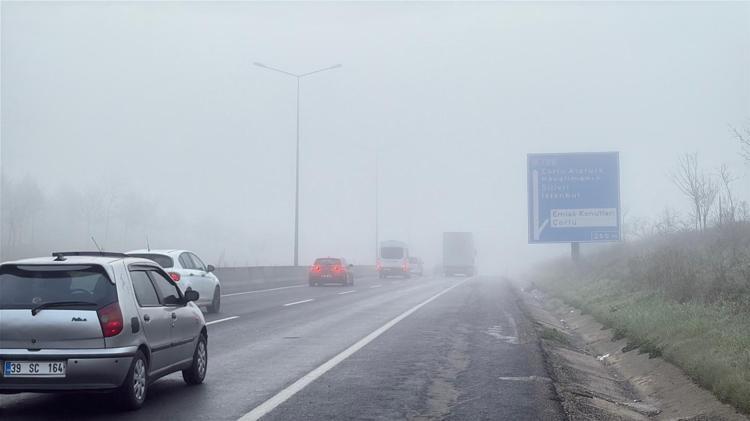 Çorlu'da sabah saatlerinde başlayan yoğun sis, hayatı olumsuz etkiledi. Görüş mesafesinin 20 metrenin altına düştüğü ilçede, trafikte sürücüler zor anlar yaşadı.
