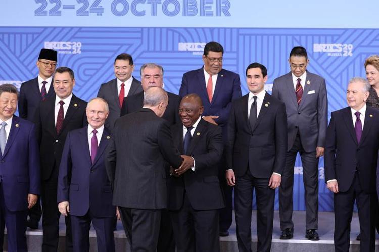 Cumhurbaşkanı Recep Tayyip Erdoğan, Rusya'ya bağlı Tataristan Cumhuriyeti'nin başkenti Kazan'da düzenlenen BRICS Zirvesi öncesinde liderler ile aile fotoğrafı çekimine katıldı.