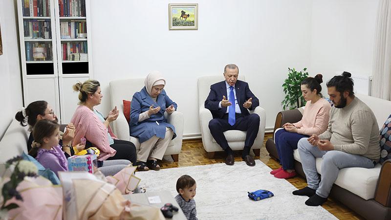 Cumhurbaşkanı Erdoğan ile eşi Emine Erdoğan, Kahramanmaraş'ın Afşin ilçesinde depreme yakalanan Hülya Çelebi ve ailesini, Çankaya'da kaldıkları evlerinde ziyaret etti.