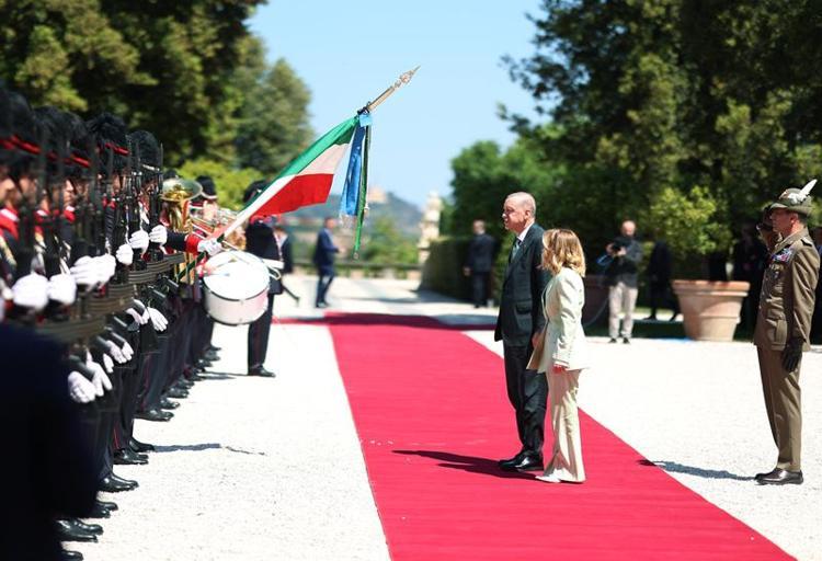 Ardından Erdoğan ile Meloni baş başa görüşmeye geçti. Başbakan Meloni, Villa Pamphili Konutu'nda düzenlenen törende, Cumhurbaşkanı Erdoğan'ı aracından inerken karşıladı.
