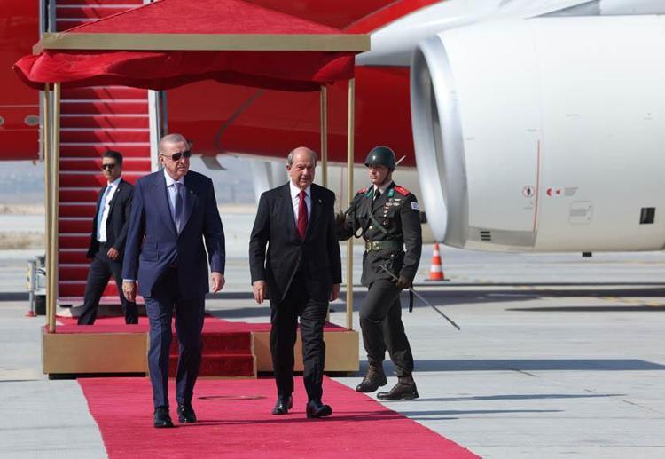 KKTC Cumhurbaşkanı Ersin Tatar, Cumhurbaşkanı Recep Tayyip Erdoğan'ı resmi törenle karşıladı.