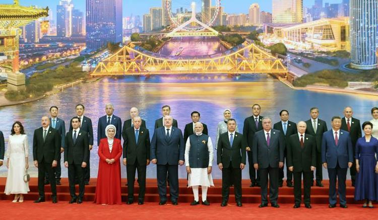 Cumhurbaşkanı Recep Tayyip Erdoğan, eşi Emine Erdoğan ile Çin’in Tiencin şehrinde düzenlenen Şanghay İşbirliği Örgütü’nün 25’inci Devlet Başkanları Konseyi Zirvesi'ndeki aile fotoğrafı çekiminde yer aldı.