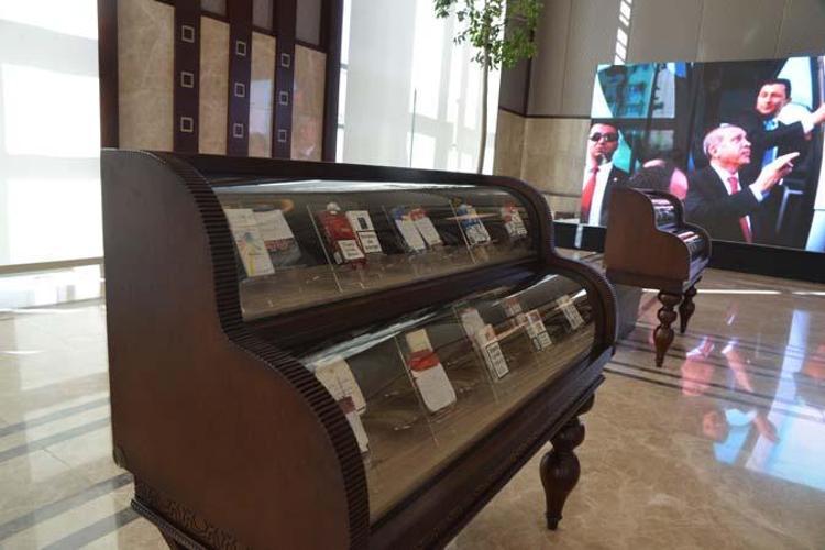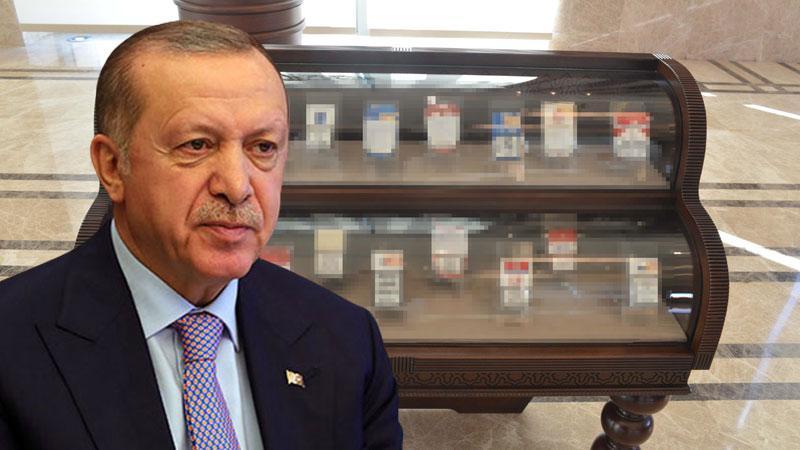 Cumhurbaşkanı Erdoğan'ın topladığı sigara paketlerinden 215'i, Cumhurbaşkanlığı Külliyesi Beştepe Sergi Salonu'nda sergilenmeye başlandı.