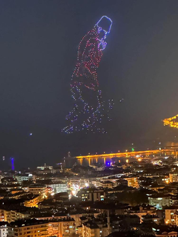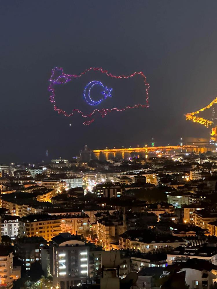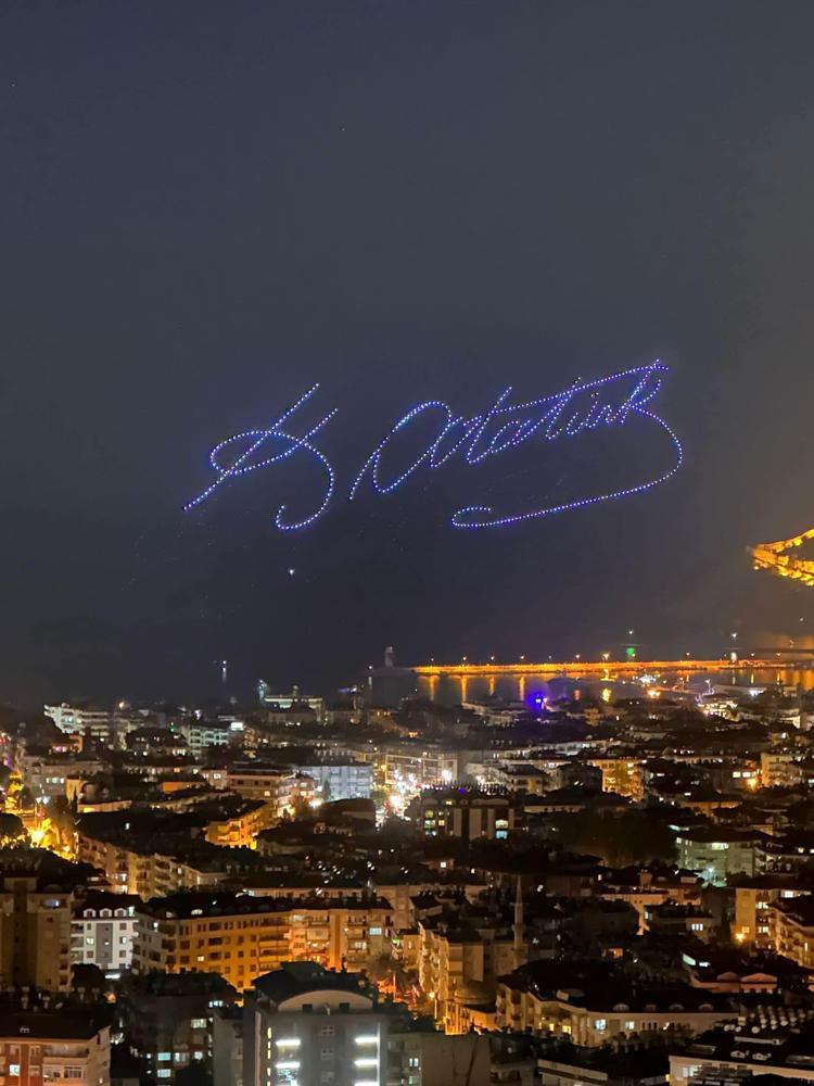 Antalya'nın Alanya ilçesinde, 29 Ekim Cumhuriyet Bayramı'nın 100’üncü yılı dron gösterisi ve Sefo konseriyle kutlandı. Yaklaşık 500 dronla gökyüzünde yapılan gösteri ilgiyle izlendi.