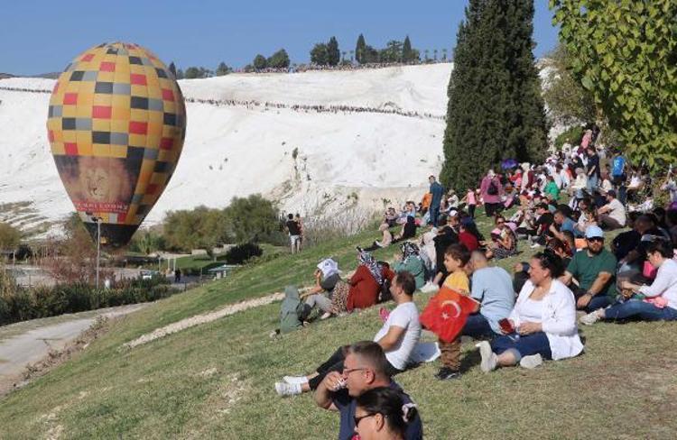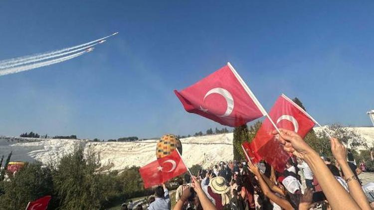 Cumhuriyet'in 100'üncü yılı nedeniyle beyaz travertenleriyle dünyanın her yerinden turistlerin ziyaret ettiği Pamukkale'de düzenlenen Gençlik ve Havacılık Festivali'ne ilgi yoğun oldu. Denizli protokolünün yanı sıra yüzbinlerce kişi Pamukkale'ye akın etti.