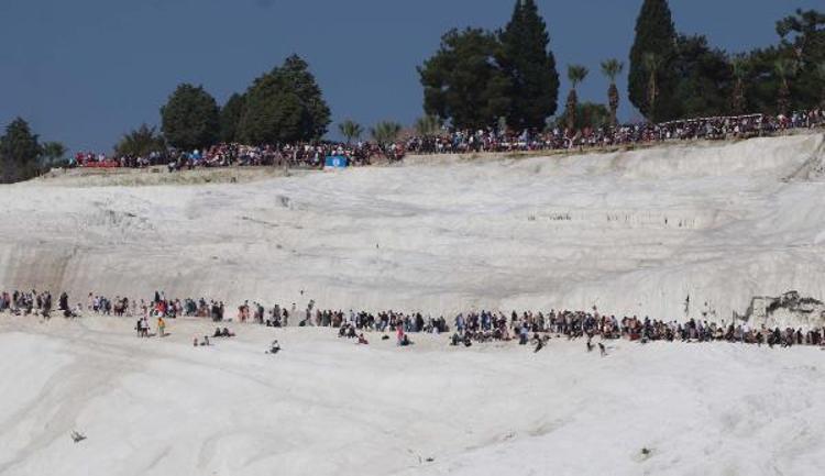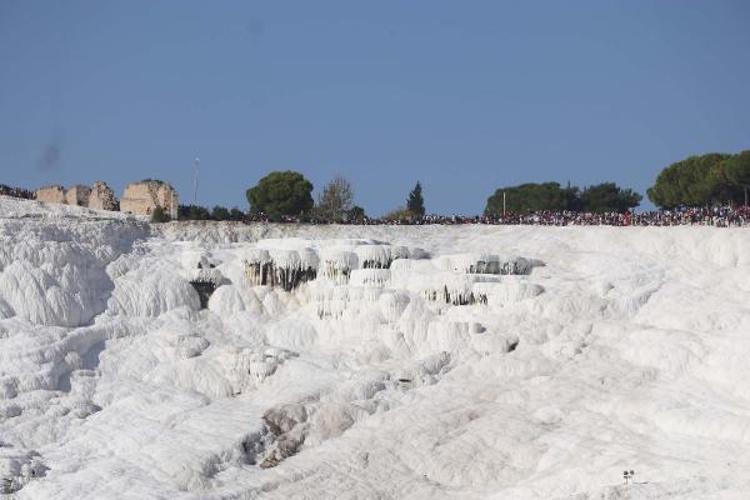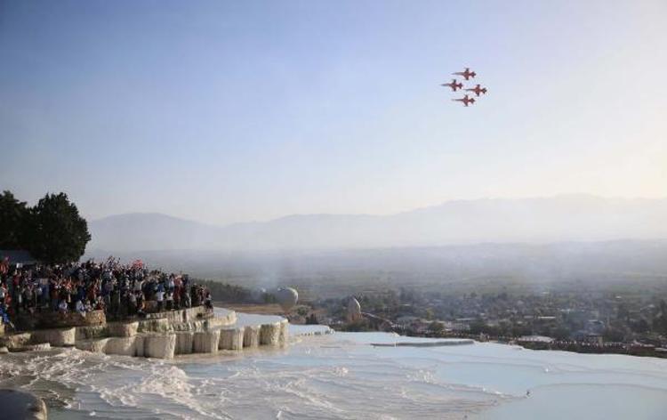Pamukkale'ye gelen vatandaşlar Türk Yıldızlarını izleyebilmek için travertenleri, seyir teraslarını ve yürüyüş alanlarını doldurdu. Binlerce vatandaş Türk Yıldızları ekibinin gösterisini ilgiyle izledi. Vatandaşlar gösteriyi cep telefonlarıyla görüntüledi.'