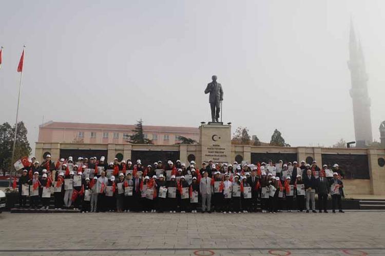 Cumhuriyet'in 102’nci yılında 102 öğrenci gazete, bayrak ve şapka dağıttı