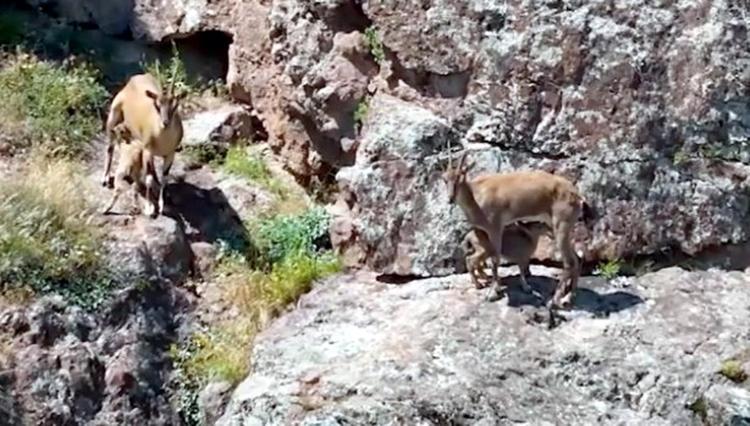 Dağ keçileri, yavrularını beslerken görüntülendi