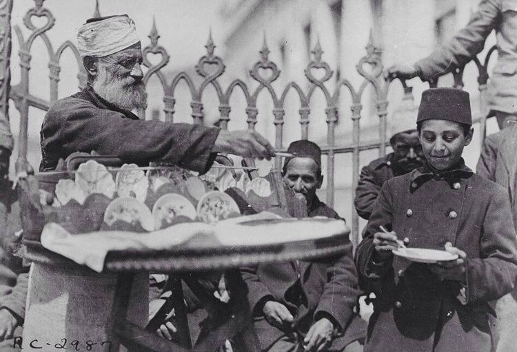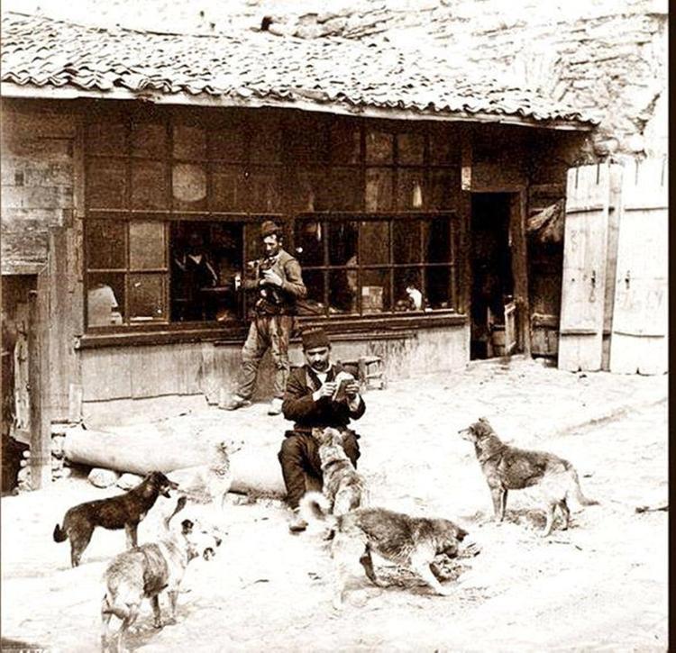 1870 ler İstanbulSokak köpekleri besleyen bakıcı