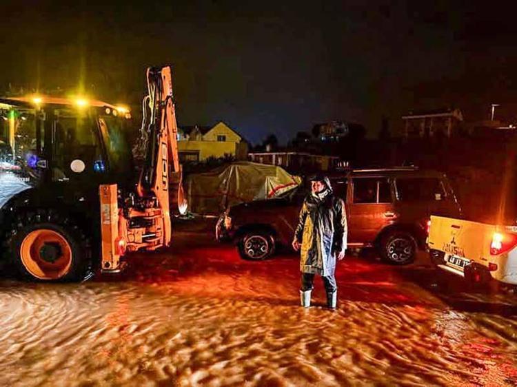 Datça Kaymakamı Murat Atıcı su baskını yaşanan yerlerde ekiplerin çalışmalarını inceleyerek koordine etti.