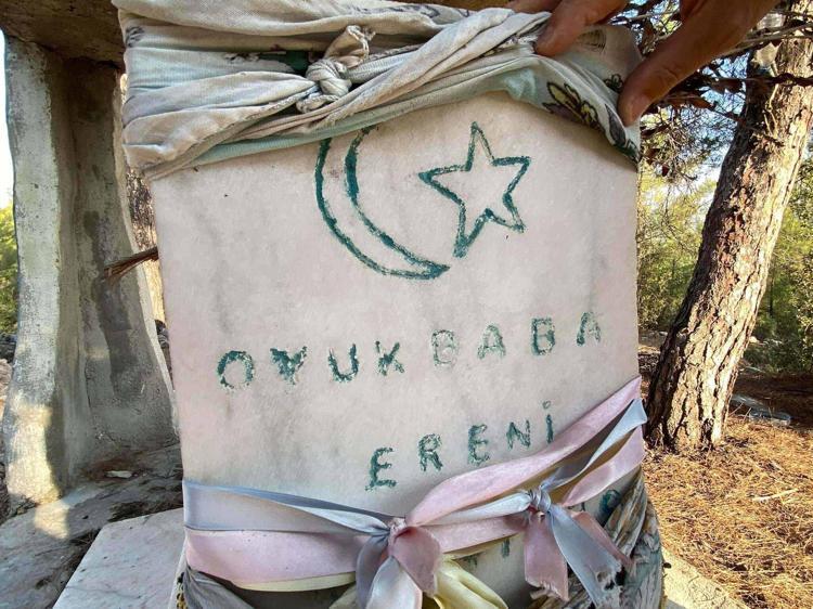 Muğla'nın Yatağan ilçesindeki 300 yıllık Oyuk Baba Ereni mezarı, kimliği belirsiz define avcıları tarafından kazılarak tahrip edildi. Bölgeyi inceleyen araştırmacı-yazar Tarcan Oğuz, "Bu tip mezarlarda para veya altın bulunma ihtimali yoktur" dedi.