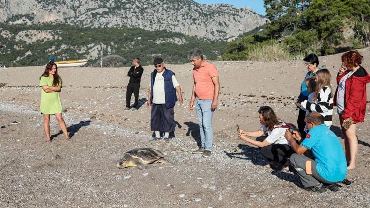 Sahilde 25 yıldır deniz kaplumbağalarının yuvalarını koruyan gönüllüler, sabah erken saatlerde sahile indiklerinde bir deniz kaplumbağasını sahilde yuva yaparken gördü. Kısa sürede tatilcilerin de yoğun ilgi gösterdiği bu olayda deniz kaplumbağasının rahatsız olmaması için çevrede önlem alındı.