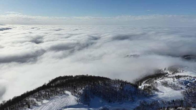 Kar kalınlığının 2 metreyi aştığı Handüzü Yaylası’nda hava sıcaklığının yükselmesiyle vadilerde oluşan bulut, seyrine doyumsuz bir manzara sunuyor. Bölgeye gelen ziyaretçiler, bir yandan şampiyonanın heyecanına ortak olurken diğer yandan da eşsiz manzaranın keyfini sürüyor.
