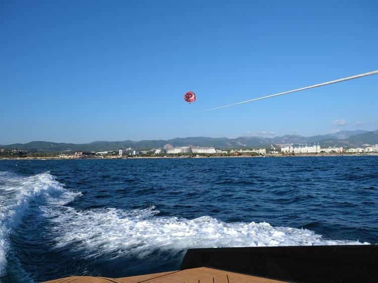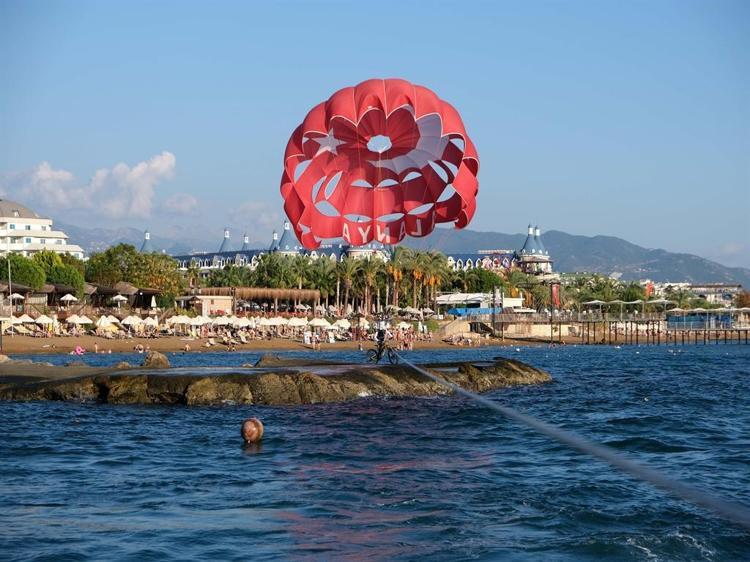 Alanya'da Türkler Mahallesi açıklarında gerçekleştirilen etkinlikte, Sky to Sea Dağ Bisikleti Yarışı'nın 'hardtail' kategorisi birincisi ve Antalya'da düzenlenen DownTown yarışlarında Türkiye birincisi olan Mevlüt Çavuşoğlu Spor Lisesi öğrencisi Yiğit Efe Al, özel olarak hazırlanan düzeneğiyle dağ bisikletini deniz paraşütü sistemine bağladı.