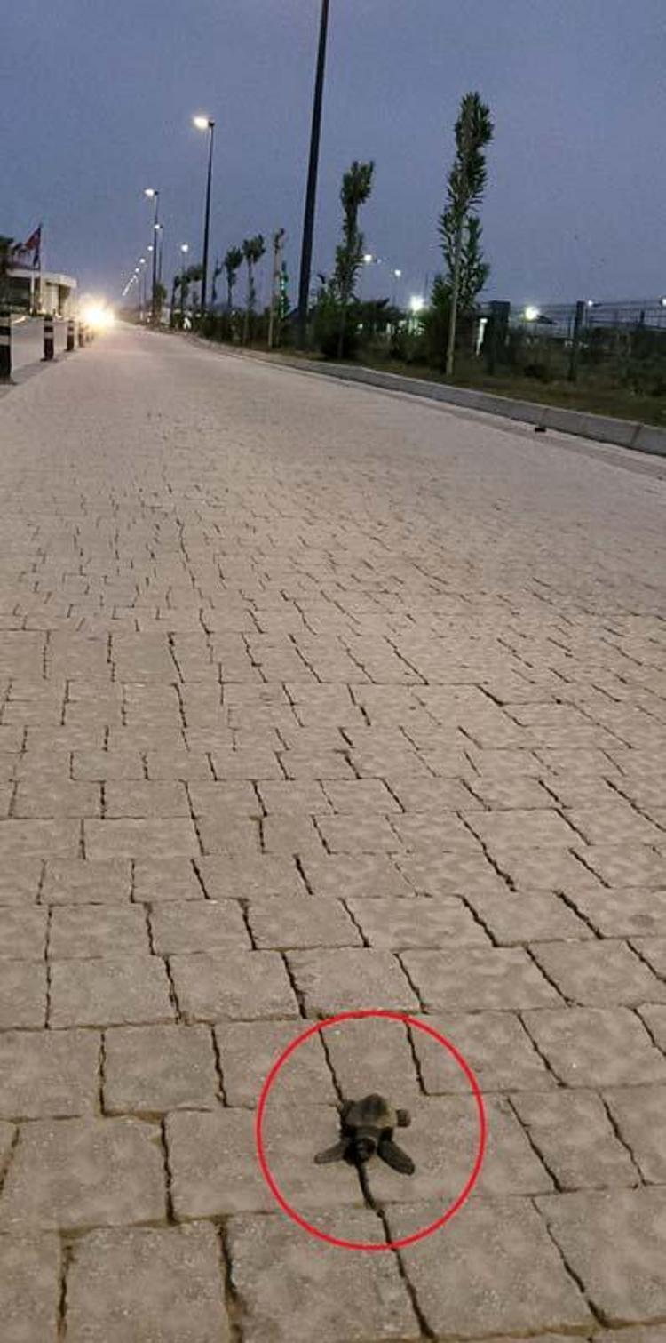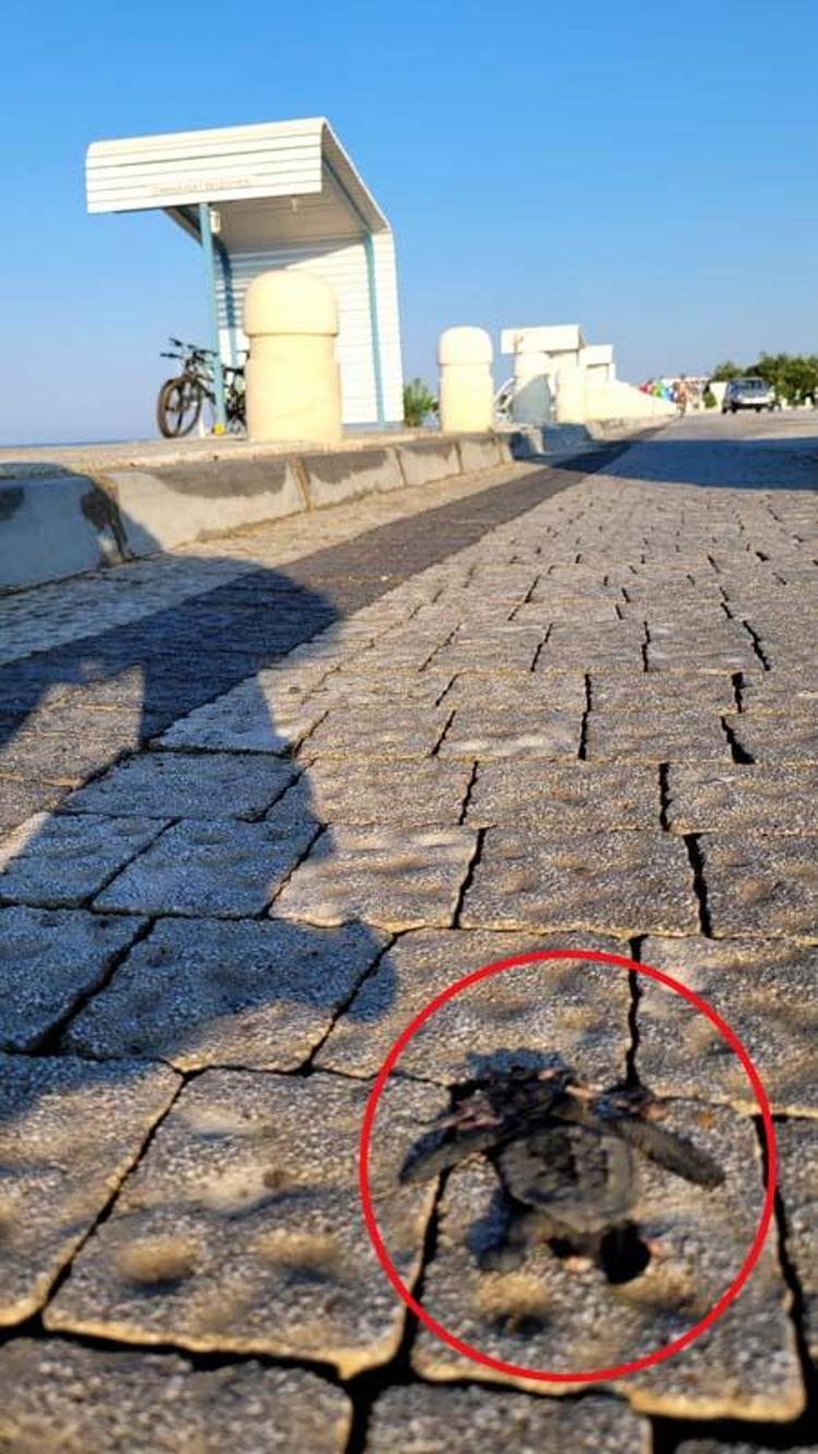 Deniz yerine caddeye çıkan yavru carettalar, araçların altında ezildi