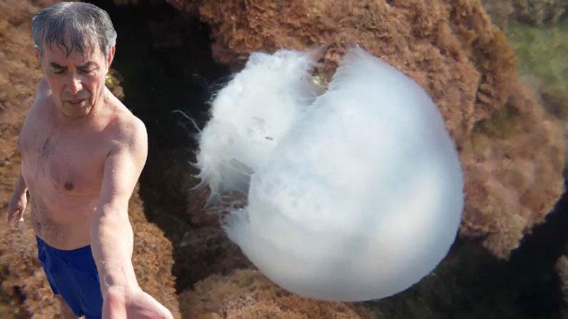 Antalya Konyaaltı Sahili'nde arkadaş grubuyla yaz- kış denize giren AÜ Ziraat Fakültesi Öğretim Üyesi Prof. Dr. Burhan Özkan'ı, kıyıya yakın bir bölgede denizanası çarptı. Arkadaşlarının da bir denizanasını çubukla karaya çıkarttığı anlar, cep telefonu kamerasına yansıdı.