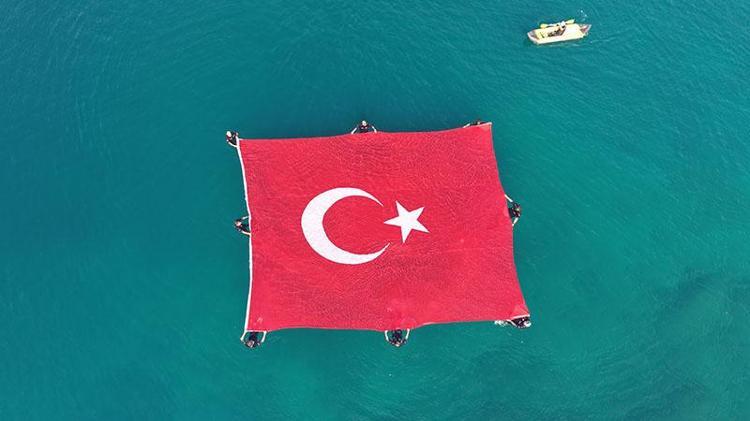 Denizde Türk bayraklı '15 Temmuz' farkındalığı