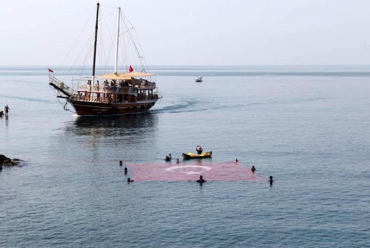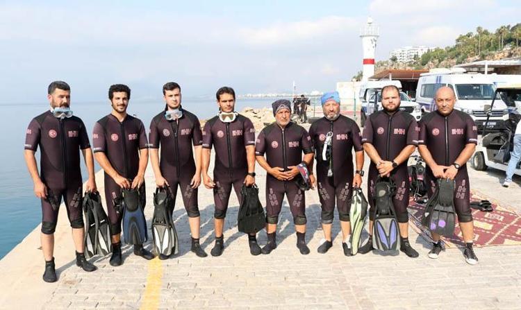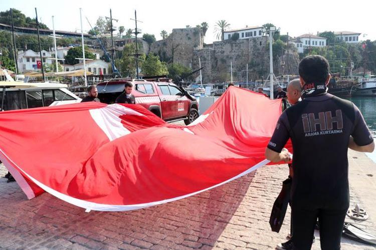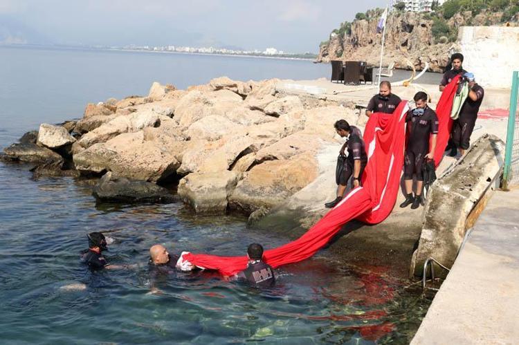 İHH İnsani Yardım Vakfı arama kurtarma üyesi 10 dalgıç, 15 Temmuz Demokrasi ve Milli Birlik Günü dolayısıyla Kaleiçi'nde yer alan yat limanında bir araya geldi. Burada hazırlıklarını tamamlayan ekip üyeleri, dalgıç kıyafetlerini giydikten sonra 9x12 ebadındaki Türk bayrağını alarak, sıra halinde denize girdi. Kıyıdan yaklaşık 15 metre açığa giden dalgıçlar, Türk bayrağını açtı. Bir süre deniz yüzeyinde bekleyen ekip, daha sonra açtıkları bayrakla kıyıya döndü.