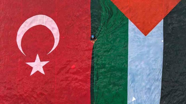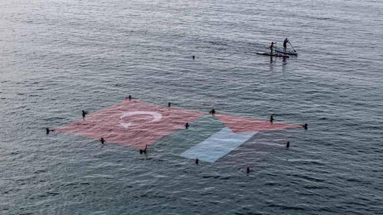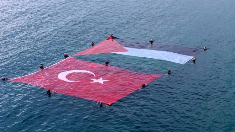 Denizde Türk ve Filistin bayraklarıyla destek mesajı