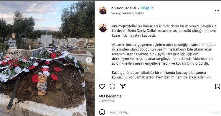 Esma Deniz Dellal Erkutlu'nun Almanya'da yaşayan ağabeyi Onur Oğuz Dellal, sosyal medya hesabından kardeşinin mezarının fotoğrafı ile yaptığı paylaşımda Ahmet Gürkan Erkutlu'nun, kardeşini öldürdüğünü öne sürdü. Ağabey Dellal, paylaşımında, "Bu büyük acı içimde derin bir iz bıraktı. Sevgili kız kardeşim Esma Deniz Dellal, kocasının aşırı alkollü olduğu bir araç kazasında hayatını kaybetti. Ablamın kocası, yaşamını eşinin maddi desteğiyle sürdüren, hatta ilk eşinden olan çocuğunun bakım masraflarını bile utanmadan ablamın üzerine yıkmış bir kişiydi. Her gün içki içip eve dönmeyen ve maço tavırlar sergileyen bir adamdı.