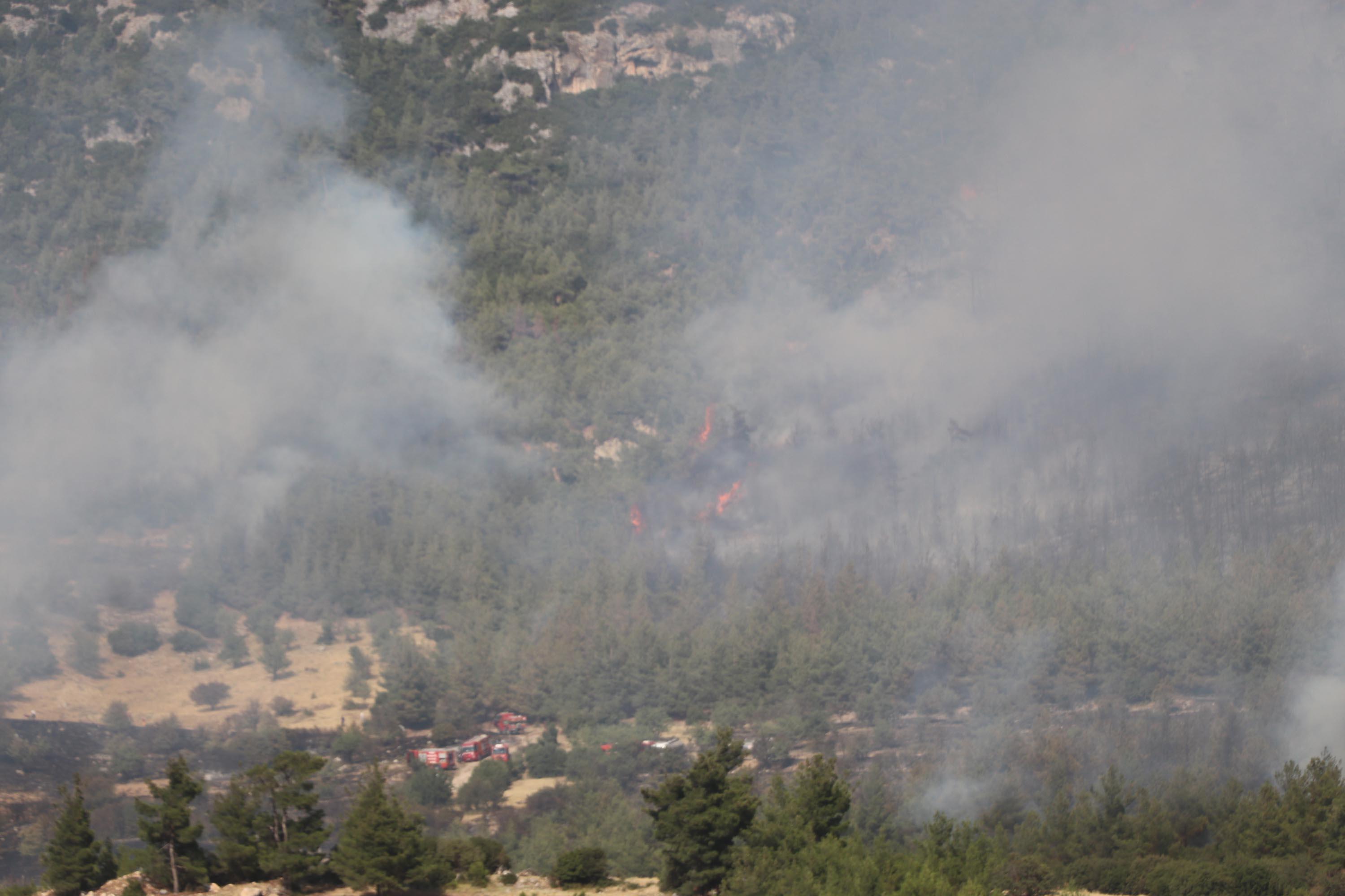 Denizli'nin Pamukkale ilçesinde orman yangını çıktı. Alevlere, havadan ve karadan müdahale sürüyor.
