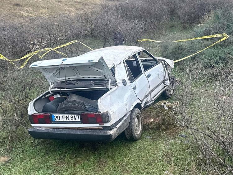 Denizli'de yoldan çıkıp 50 metre yuvarlanan otomobilin sürücüsü öldü
