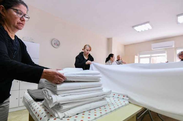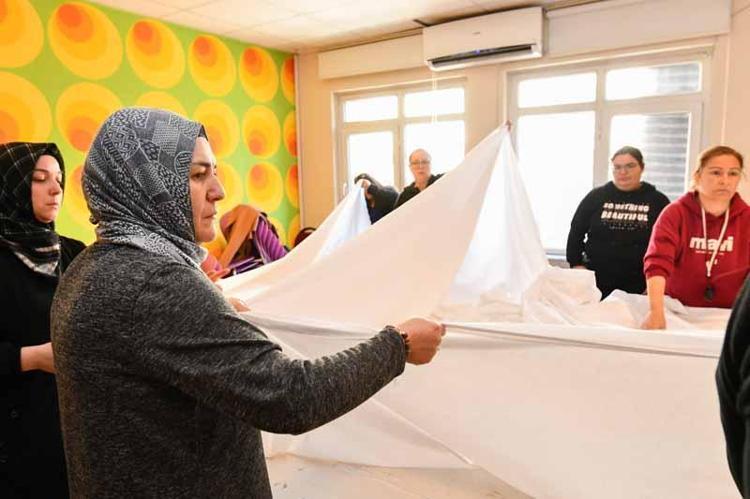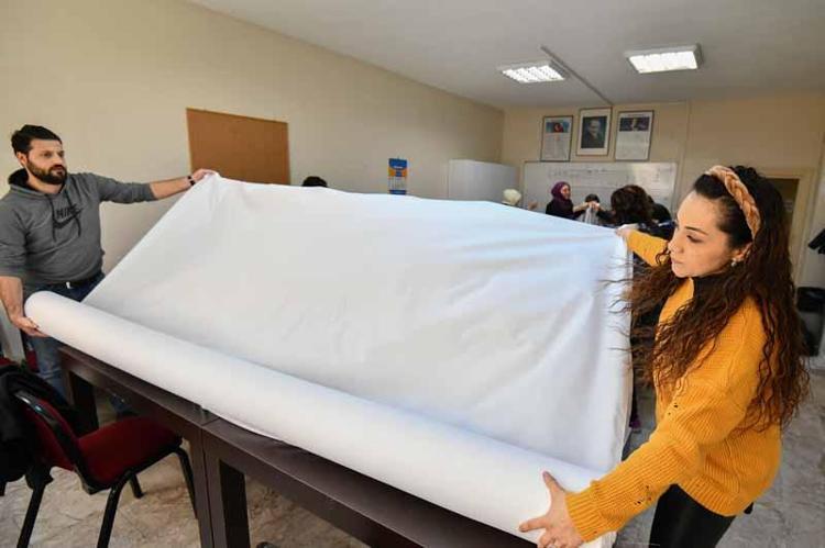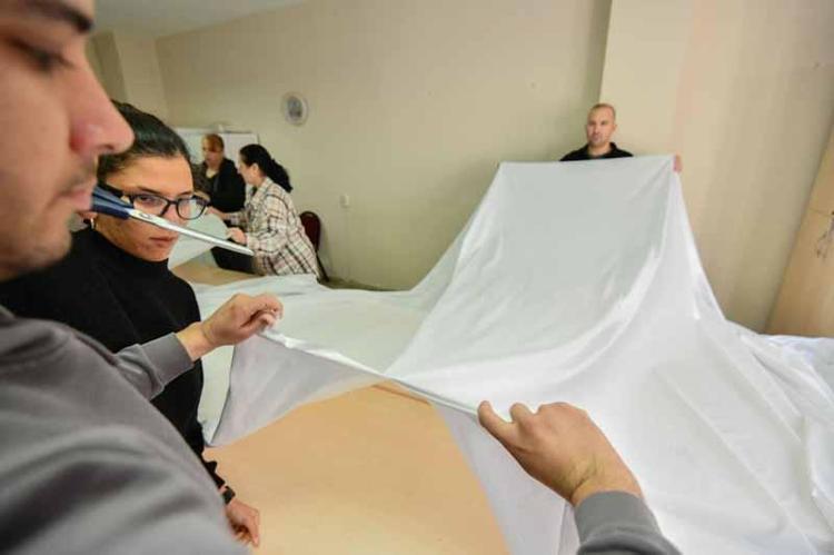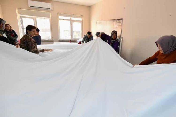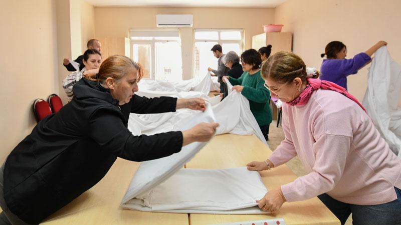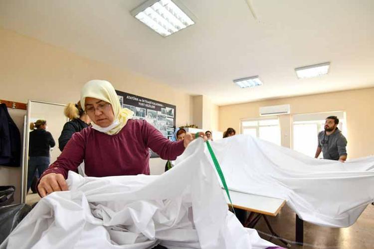Belediyenin Meslek Edindirme Kurs Sorumlusu Fethiye Özen, 50 kişilik ekiple 1 saatte 21 top kumaştan kefen oluşturduklarını söyledi. Özen, “İhtiyaç listesinin başında kefen var. Bize de maalesef bu görev düştü. 50 kişilik öğretmen ve öğrencilerimizle kumaşları tek tek kesip, poşetliyoruz" ifadelerini kullandı.